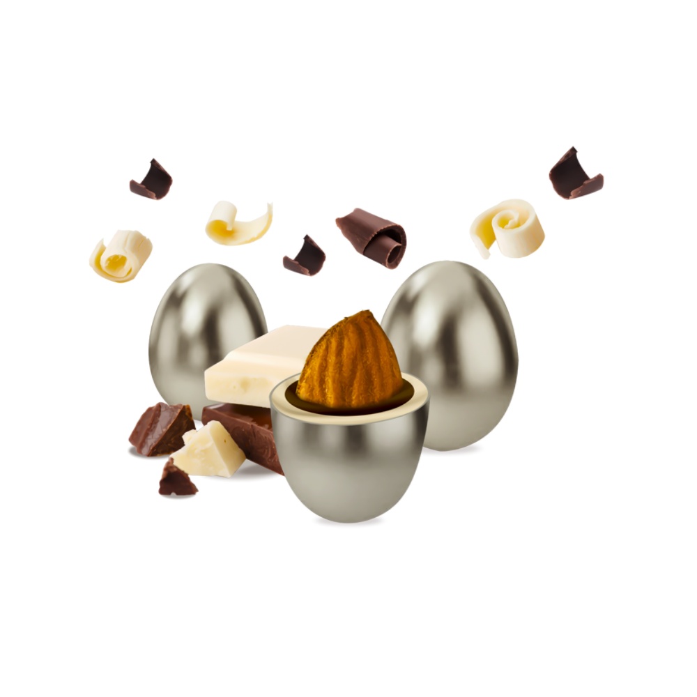 Обжаренный миндаль. Тонкий слой темного и белого шоколада. Серебристая сахарная глазурь. Без пальмового масла, без загадочных ингредиентов, без компромиссов. Вот и весь рецепт, который не нужно расшифровывать как научный труд.