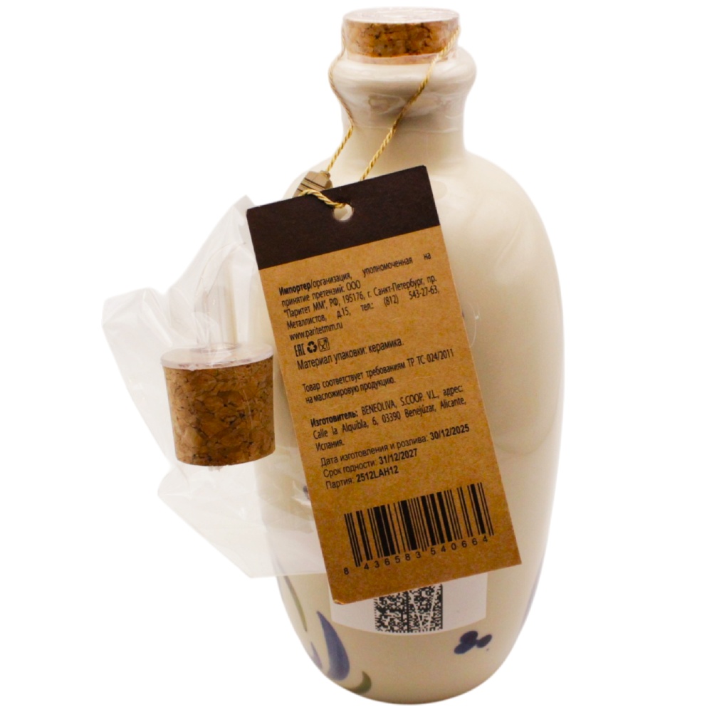 Состав испанского оливкового масла в керамическом кувшине Beneoliva Blue Flower Extra Virgin Испания, 500 мл: Оливковое масло первого холодного отжима из оливок сорта Арбекина.