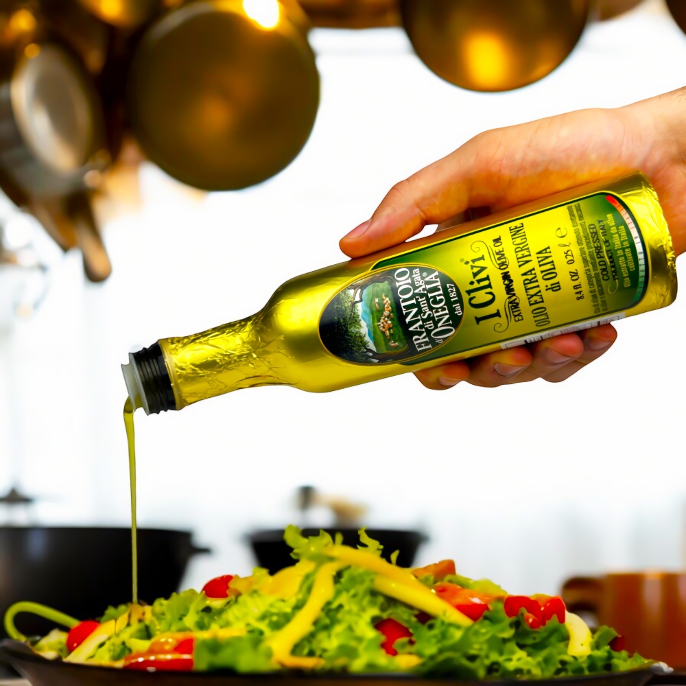 - Запах свежести: Если ваше предыдущее масло пахло рыбой или имело прогорклый привкус — знайте, это не оливковое масло, а результат окисления и неправильного хранения. I Clivi пахнет молодой травой и свежестью.
