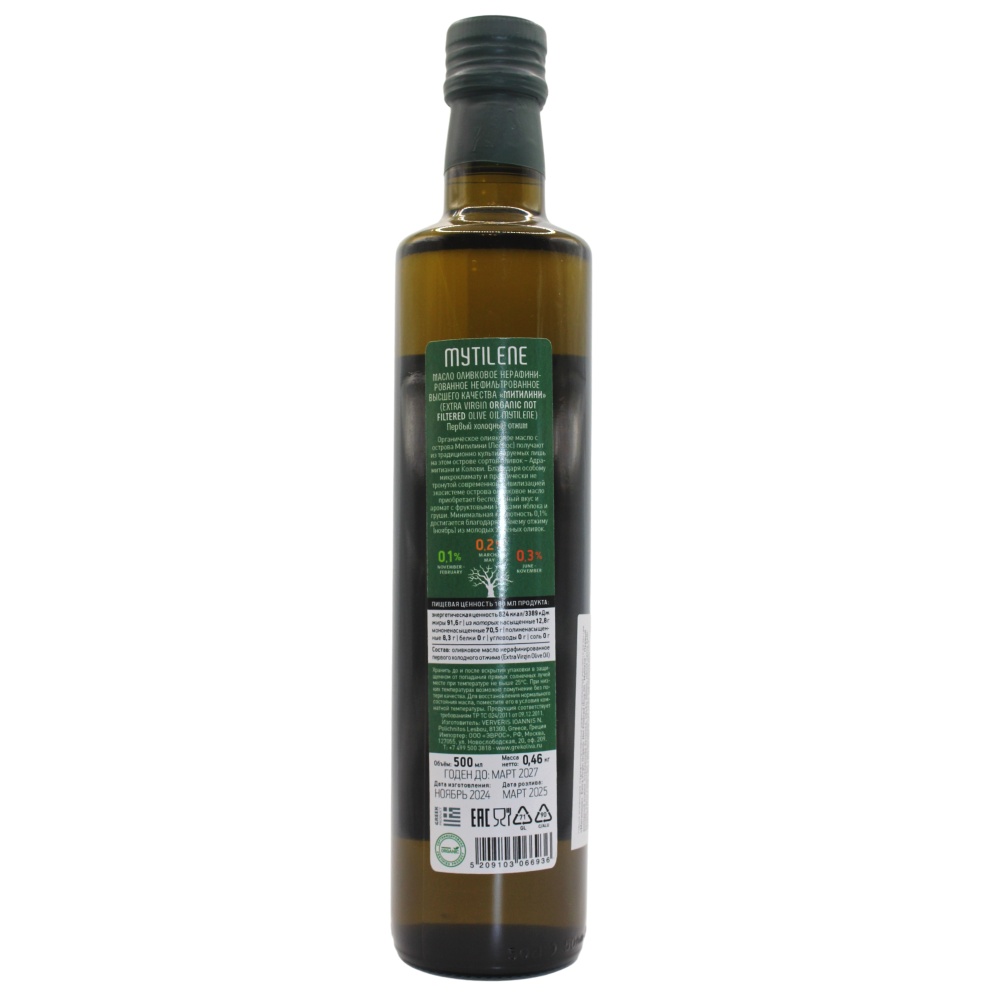 Оливковое масло MYTILINI нефильтрованное Premium Organic e/v Греция, 500 мл компании Ververis Ioannis N