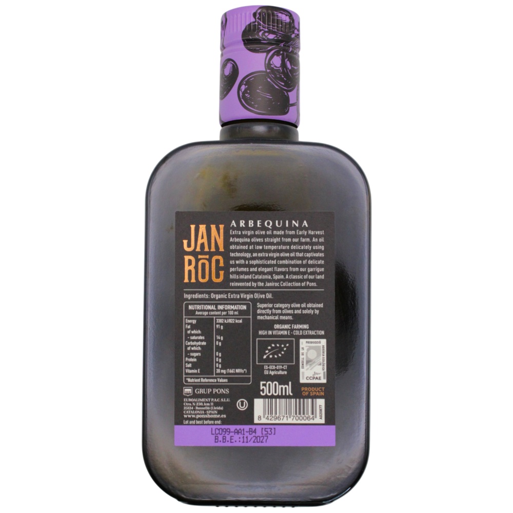 Описание Оливковое масло Pons Janiroc Arbequina Organic Extra Virgin Испания, 500 мл