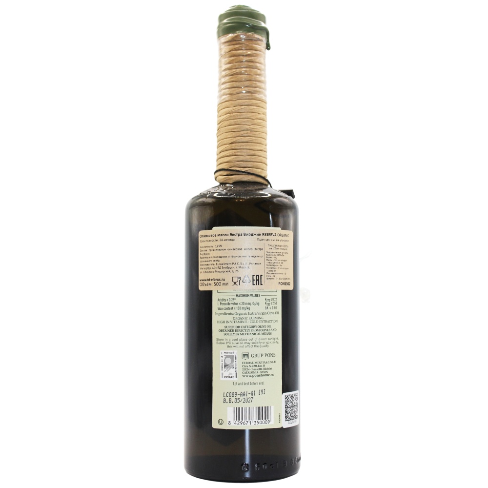 Описание Оливковое масло Pons Reserve Arbequina Organic Extra Virgin Испания, 500 мл