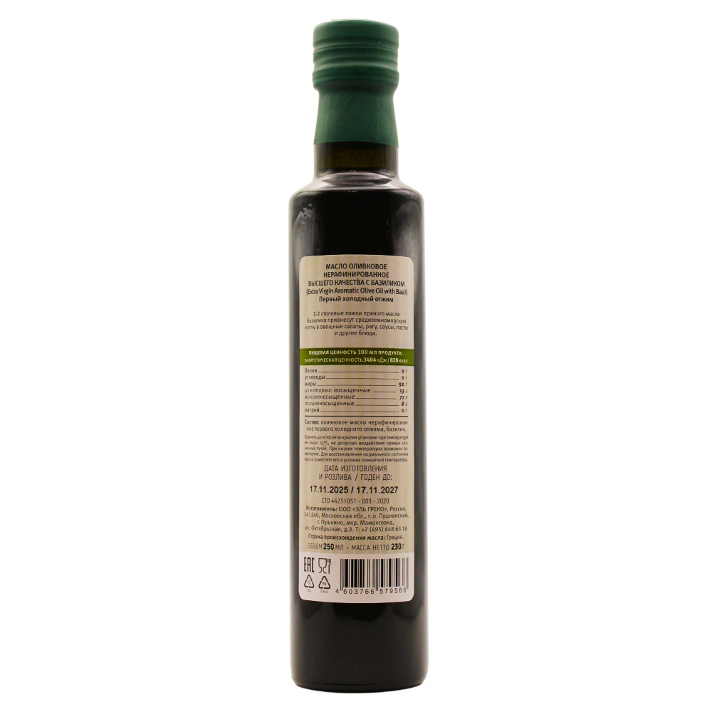 Состав оливкового масла с базиликом Extra Virgin EcoGreece Греция, 250 мл: Оливковое масло нерафинированное первого холодного отжима, базилик. Природно низкая кислотность, не превышающей 0.38%.